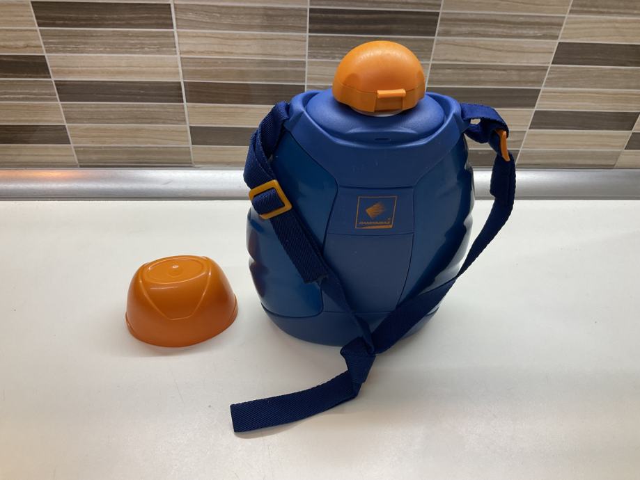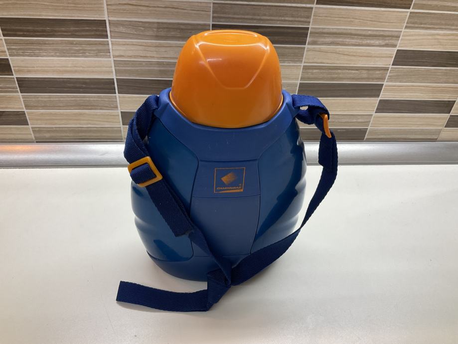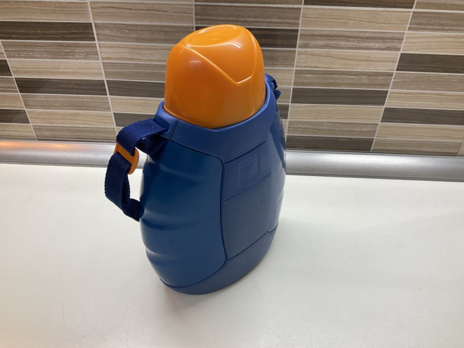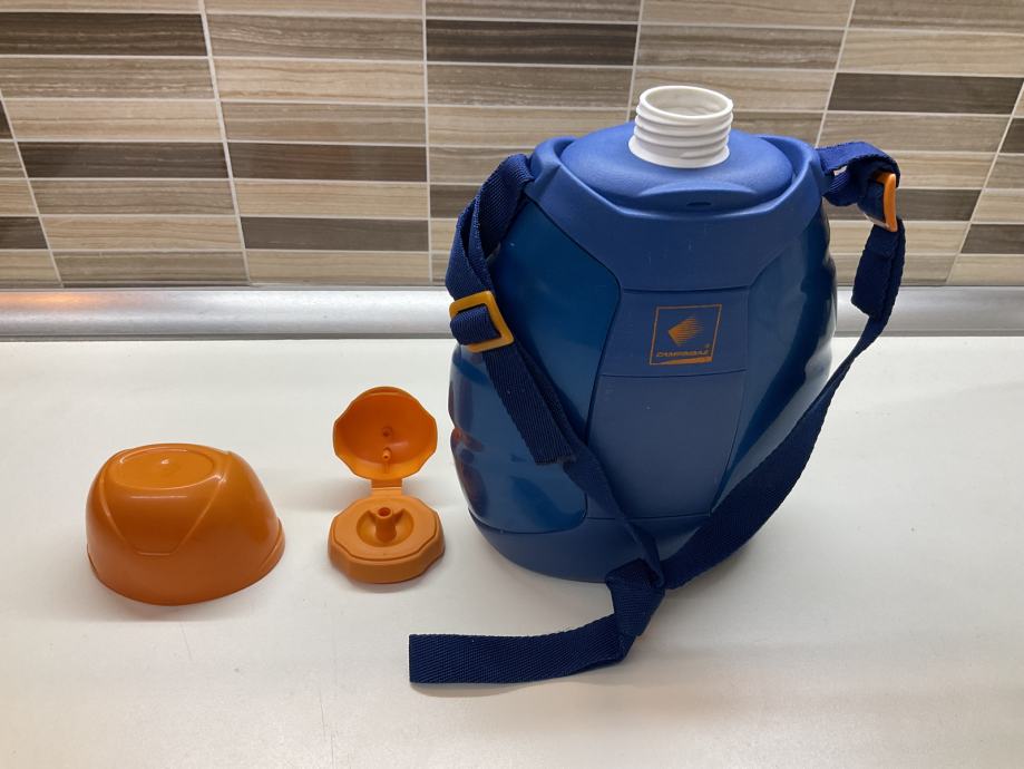 Velika čuturica za vodu sa trakom za nošenje . Debela plastika koja drži tekučinu duže hladnom. Idealno za kampiranje, planinarenje…itd.