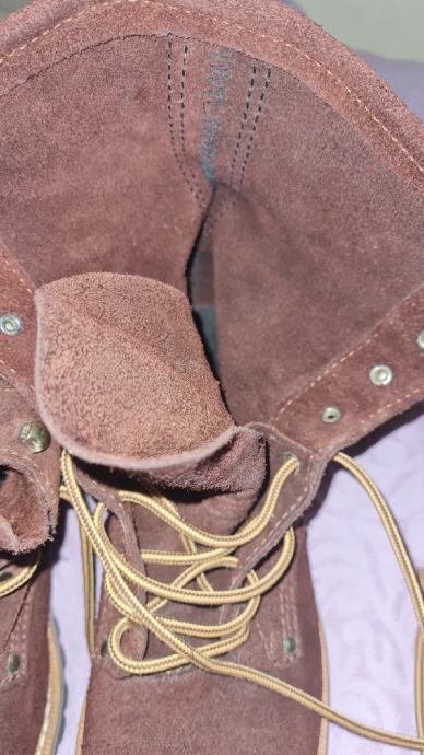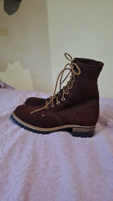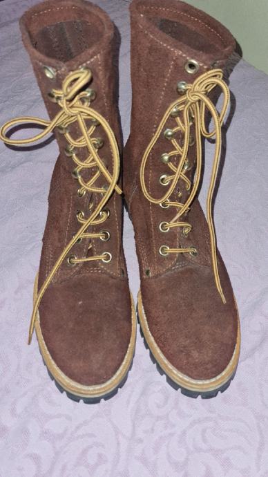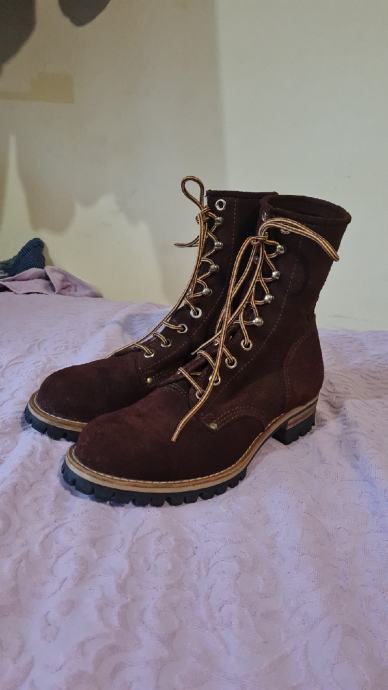 Vrhunska vatrogasna "požarna" cipela nepoznatog proizvođača, slična stvar kao "fireman boots wildland" čizma od Nicks, Redwing i sl. (nove oko 500eur). Na vanjskoj koži kod zgloba je utisak proizvođača koji ne mogu iščitati.