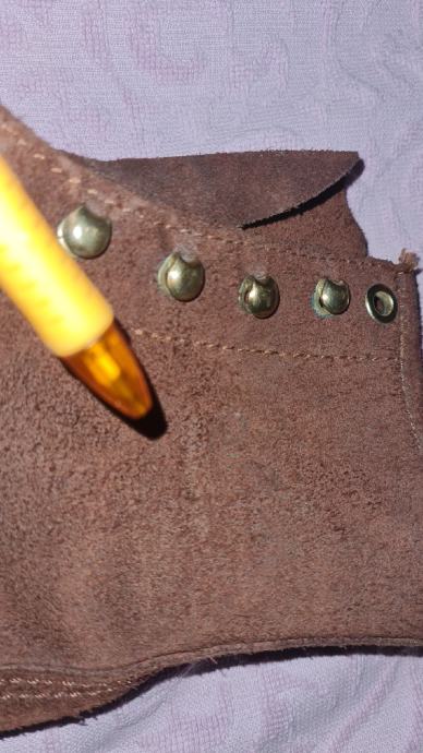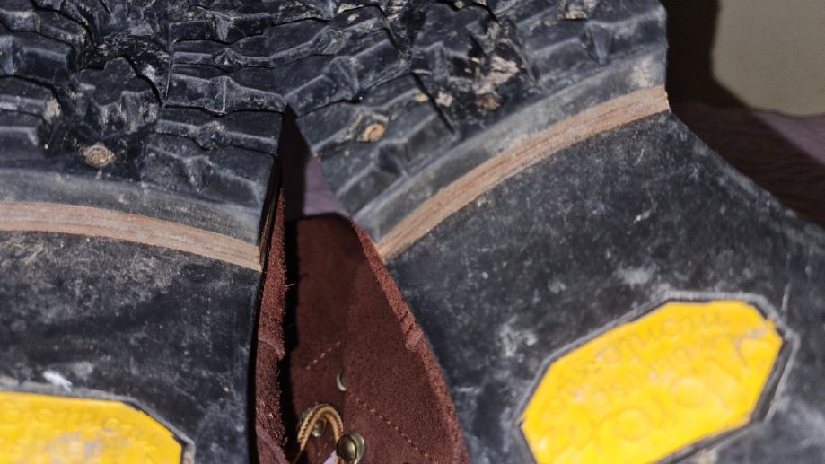 Vibram Derose Montagna džon, tanka jednoslojna suede koža za ljeto, zakovice, kožni slojevi u đžonu koji se danas više ne rade, prošiveni i promjenjivi džon, visoka peta (3cm) da olakša uspone i dulje stajanje. Visina čizme od pete je 20cm.