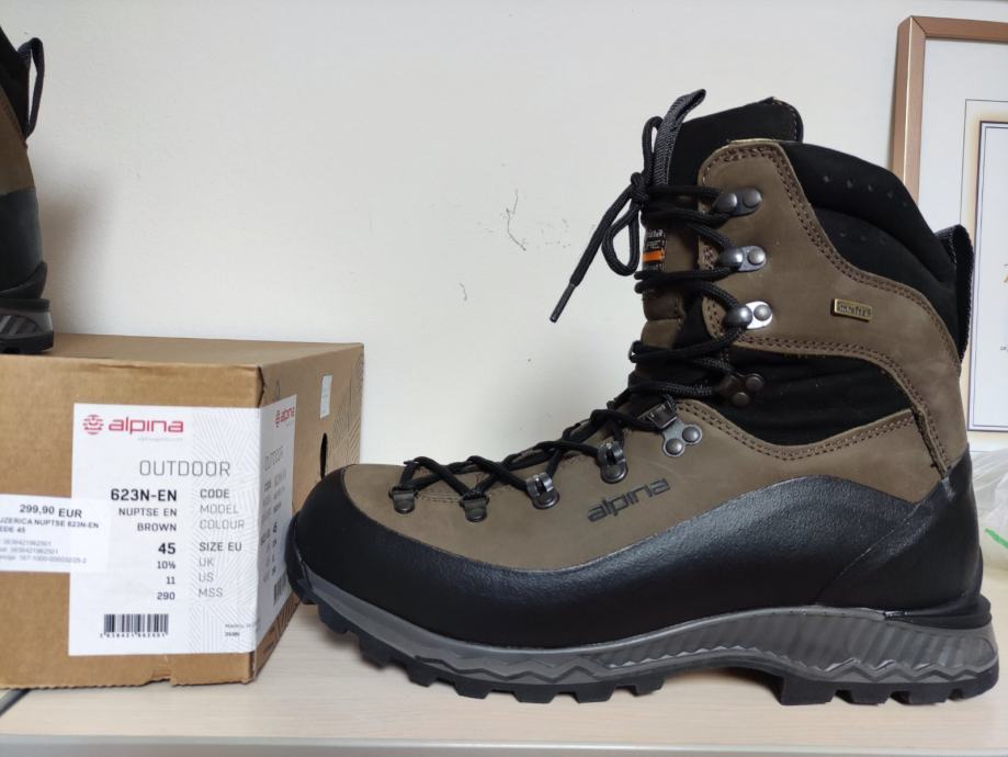 Cipelu karakterizira čvrst i dobro profiliran potplat, gumena zaštita, Symapatex membrana, Vibram guma i visokokvalitetna Nubuck koža. Kopito i kroj prilagođeni su muškom stopalu, tako da pružaju najbolje moguće prianjanje i potporu pri hodu po najtežim planinskim terenima. Sam potplat je dizajniran da izdrži dodatna opterećenja (npr. teški ruksak). Model Nuptse je udoban i funkcionalan, također pogodan za korištenje poluautomatskih dereza. Boje su neutralne i ne stvaraju probleme u održavanju obuće.