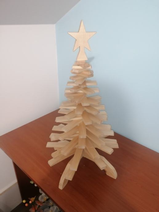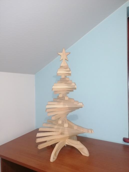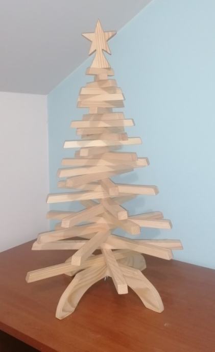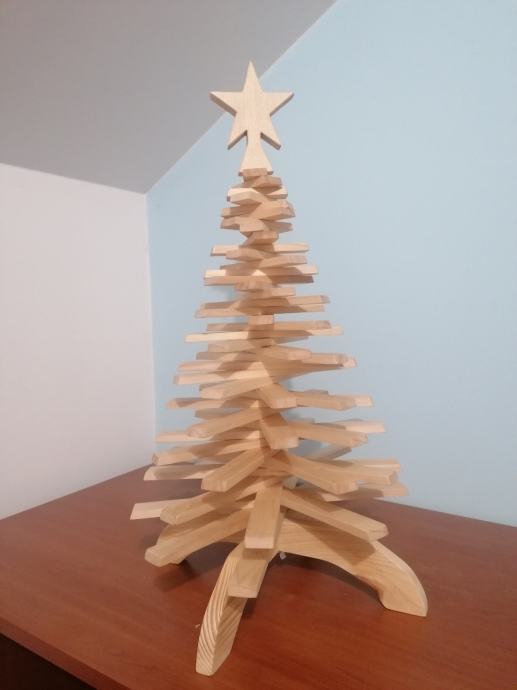 Božićno drvce ručno izrađen od masivnog drva visina 85 cm.