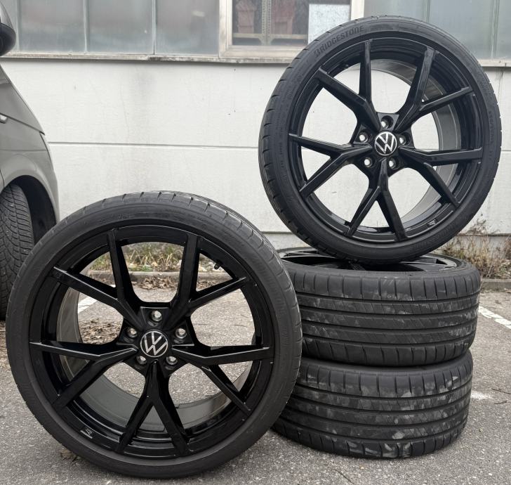 19 original VW, model Estoril Golf 8, R line , Gti, Gtd, odgovara i na druge modele golf 5,6,7 Prodaja samo u kompletu…dolaze sa odličnim ljetnim gumama Bridgestone 235 35 19 dot:3724 stanje felgi i guma kao novo… cijena 1800€