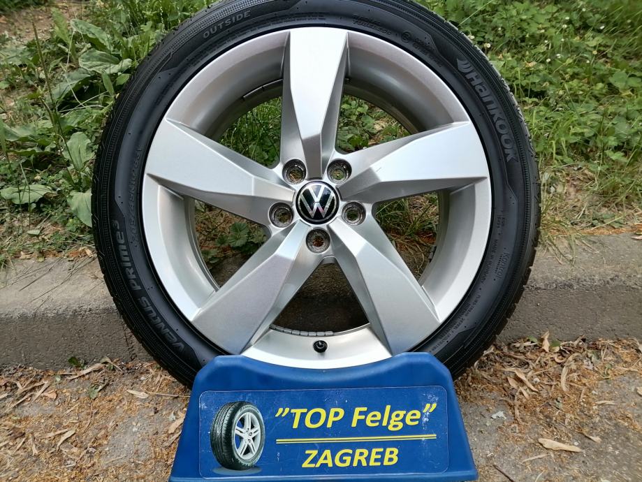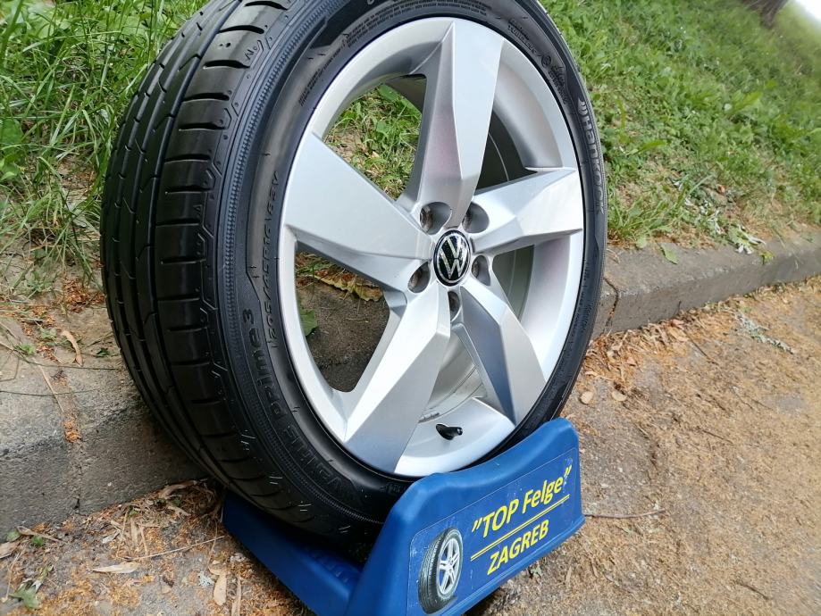 Felge u stanju novoga,"TOP STANJE",originalno tvornicko stanje-nisu taknute !!!,novi cepovi-poklopci sa novim logom original VW stavljeni,(slika br- 6 ).. Gume ljetne NOVE,koristene cca par sto km,stavljene 17",vidljiva oznaka Hankook na gaznoj povrsini,(slika br- 17 )...