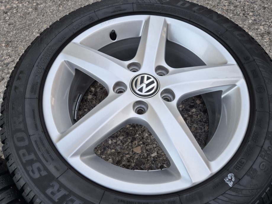 Alu felge 16 5x112 VW Golf 6 7 8 Touran Caddy sa zimskim gumama 205/55R16 91H Dunlop Winter Sport 4D / dubina sare na 2 prednje gume 8 mm, dubina sare na 2 zadnje gume 7 mm / DOT3118 - 31 sedmica 2018 godine