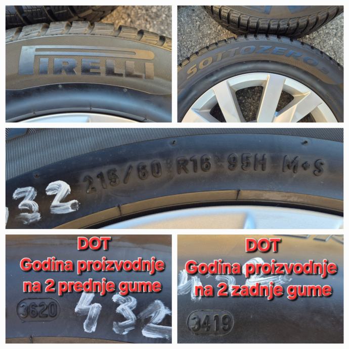 Na felgama imaju gume 215/60R16 95H M+S Zimske sve 4 Pirelli Sottozero 3 Winter