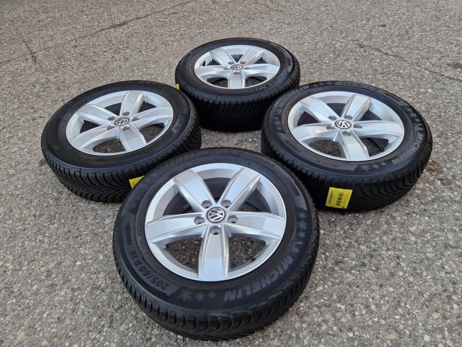 Alu felge 16 5x112 VW T-Roc Caddy Touran sa zimskim gumama 205/60R16 92H Michelin Alpin A5 / Dubina sare na 2 prednje gume 7 mm, na 2 zadnje gume 6 mm, DOT4918 / 4918 sedmica 2018 godine
