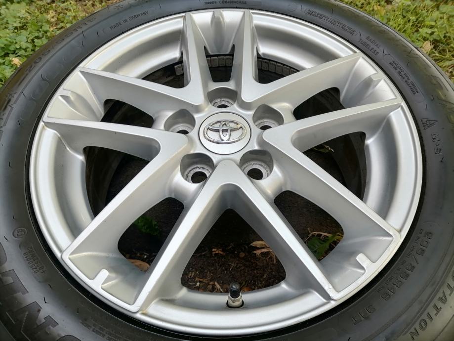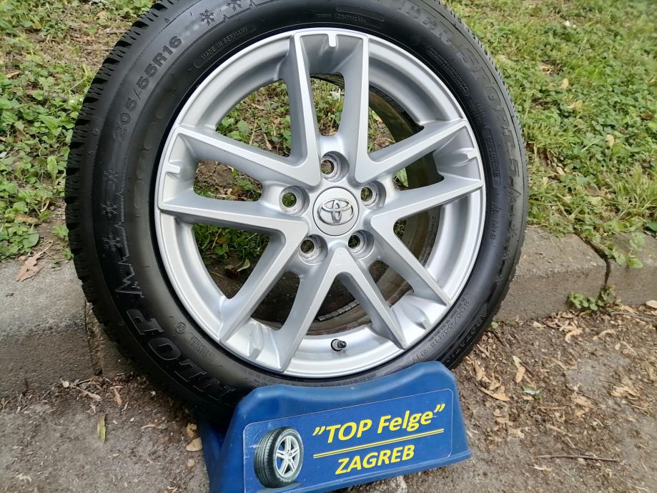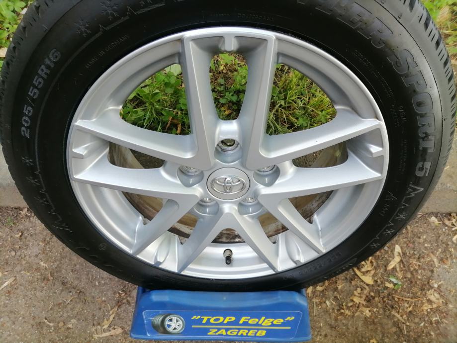 Uz felge dolaze originalni Toyota TPMS senzori sa ventilima pritiska zraka,slika br-6 !! Gume zimske M+S prakticki NOVE Dunlop Winter Sport 5 205/55x16 91T,made in Germany,dubina utora=ripne= 9 mm,puna ripna !!,sve balansirano,100%ispravno,uvoz iz D !!