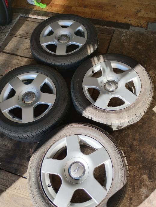 Rabljene orginal Audi aluminijske felge 4 komada, 215 / 55 / 16, ljetne gume Falken u odlicnom stanju..Bez dodatnih srafa..Detalji i ostale specifikacije u slikama- uvecaj sliku za dodatnu detaljnu provjeru..Lokacija Brod Moravice-Gorski Kotar..Nikakvo slanje postom, osobni dolazak..Moguca eventualna besplatna dostava Karlovac, Rijeka, Zagreb,Pula, Sisak, ako ja osobno ili netko od mojih ide u tom pravcu..Javljanje na moj njemacki broj WhatsApp ili direkt na 0049-176-834-54375-Andrej , u protivnom javljanje na broj mog oca Vitomira 0989008494...Cijena 150e komplet.