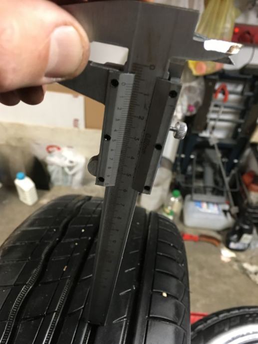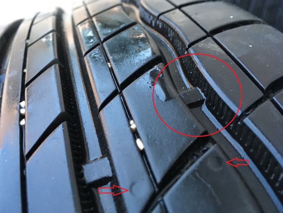 Stanje guma se vidi na namjernim krupnim planovima gdje se vide oznake max. potrošenosti, te točkice od lijevanja gume na gaznoj površini, a pored DOT oznake čak je još uvijek netaknut žuti pečat proizvođača.