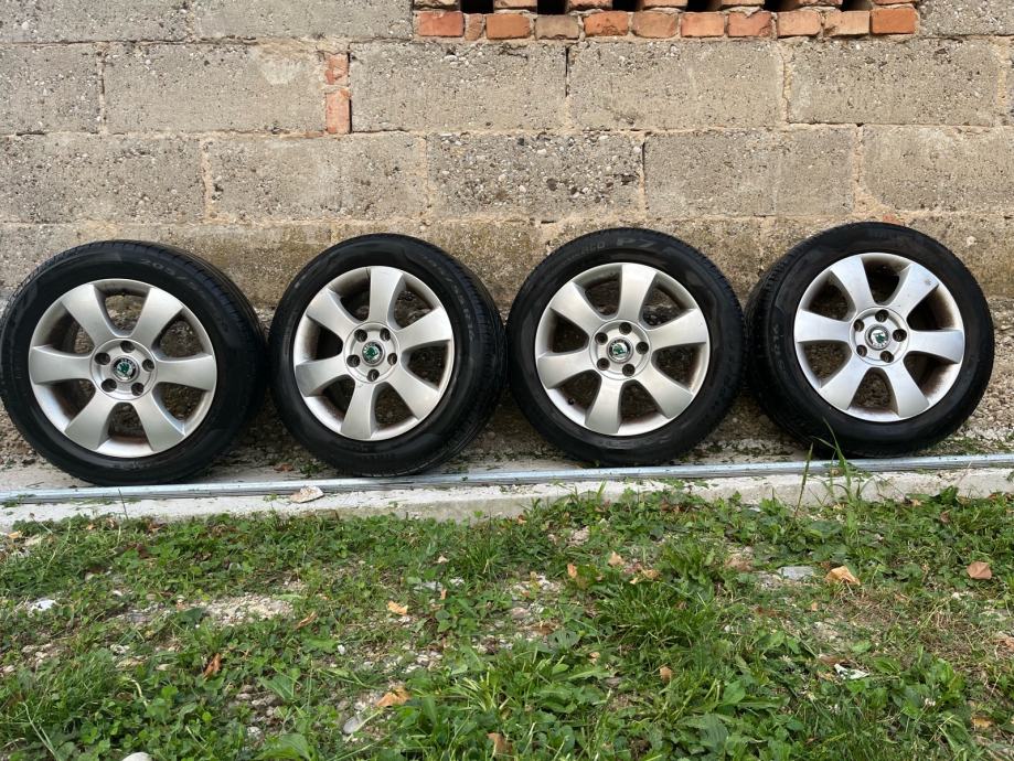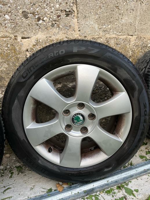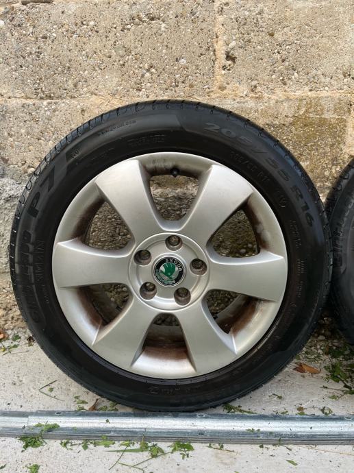Prodajem set originalnih aluminijskih felgi za Škodu, 16 cola (5 rupa), s montiranim ljetnim gumama Pirelli Cinturato P7 dimenzija 205/55 R16.