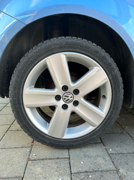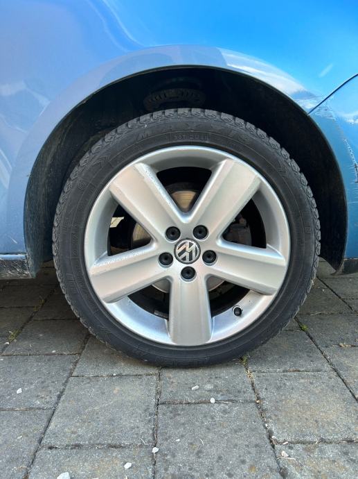 Prodajem orginal felge sa Polo 9n3, model Varano. Felge su ravne, na njima su gume cijelogodisnje 205/45/16 u dobrom stanju. Na felgama vidljivi tragovi koristenja, ali nisu ubijene. Uz set na autu ide i rezervna ista felga sa gumom.