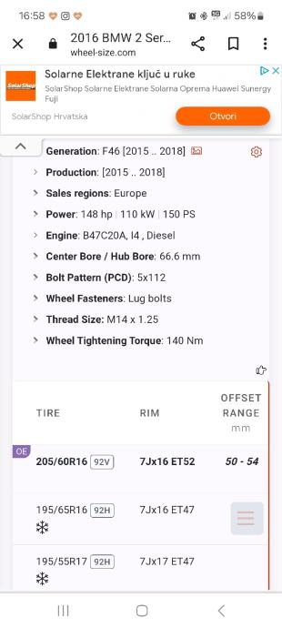 Prodajem aluminijske felge sa praktički novim gumam kako je vidljivo na slikama. Bile na bmw f46. Imaju senzore tlaka...