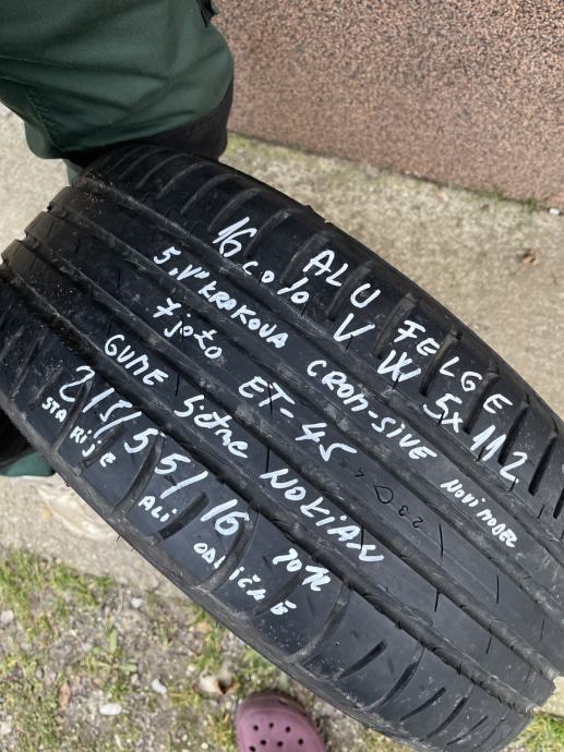 Prodajem 4 kom.Alu felge VW 16 cola rupe 5x112, Felge su orginal VW jako lijep i atraktivan NOVI MODEL pet "V" krakova u kombinaciji Crom- antracit sivoj boji..Stanje felgi : ODLIČNE-ISPRAVNE sa tragovima korištenja nisu nove ..Na felgama su namontirane Odlične gume ljetne ali starijeg datuma i njih poklanjam kupcu felgi pa zato i ne utječu na cijenu felgi jer idu na poklon a još super za vozit .. Garnitura PRIŠARAFI I VOZI .. Pogledajte sve moje oglase imam RAZLIČITI MODELA..