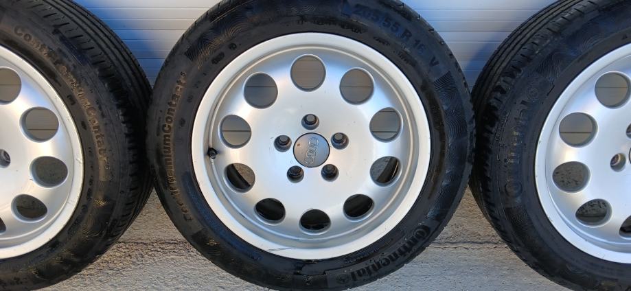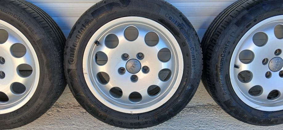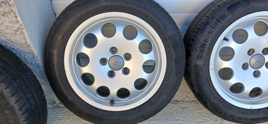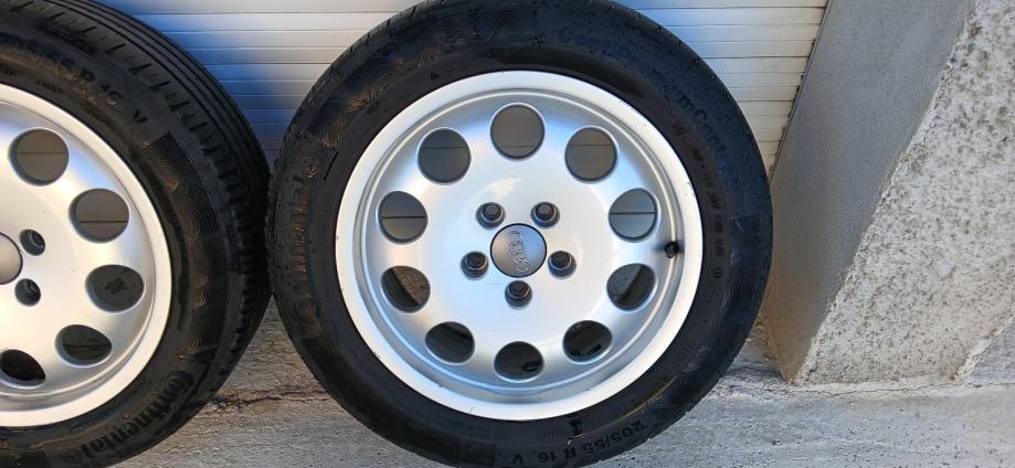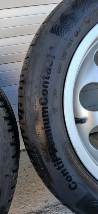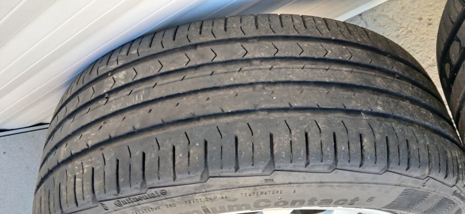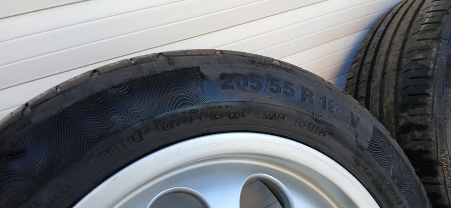 Na 4 felge su 4 iste jgume Continental 205/55/16 stariji dot 2016 godina ali mogu jos posluziti za sezonu. Peta felga je stajala za rezervu. Stanje vidljivo na slikama. Komplet 200 eur.