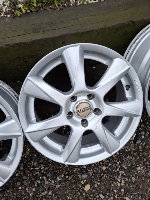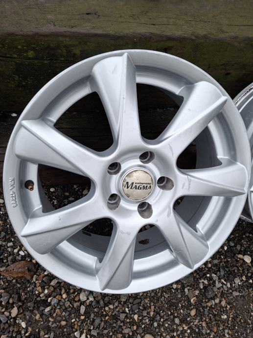 Prodajem garnituru od 4 alu felge 17 cola, raspona rupa 5 x 115 mm, širine 7 J, ET 38 ,centralna rupa 70.1mm. Felge su orginal MAGMA,MADE IN GERMANY, stanje dosta uredno, ravne na balansu, nikad varene, rubovi imaju tragovi koristenja,obični ventili. Odgovaraja za Chevrolet Captovu i Cruz te Opel Astra,Antara,Zafira.Cijena seta je 240 eur. KUTINA. moguće slanje. 0955008274