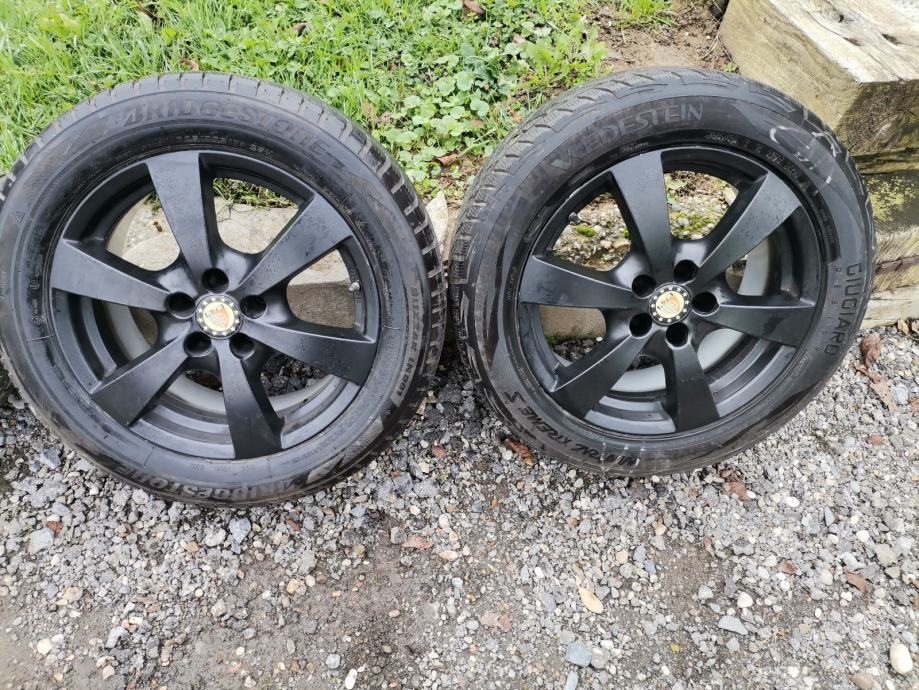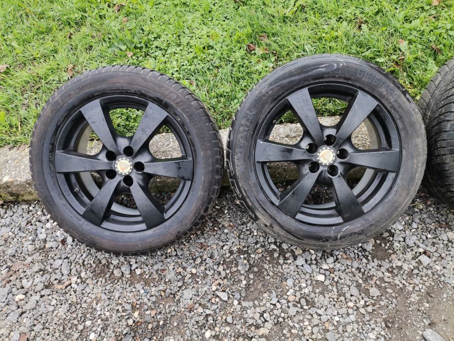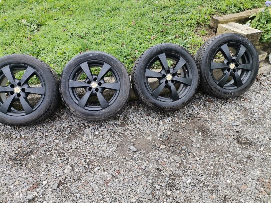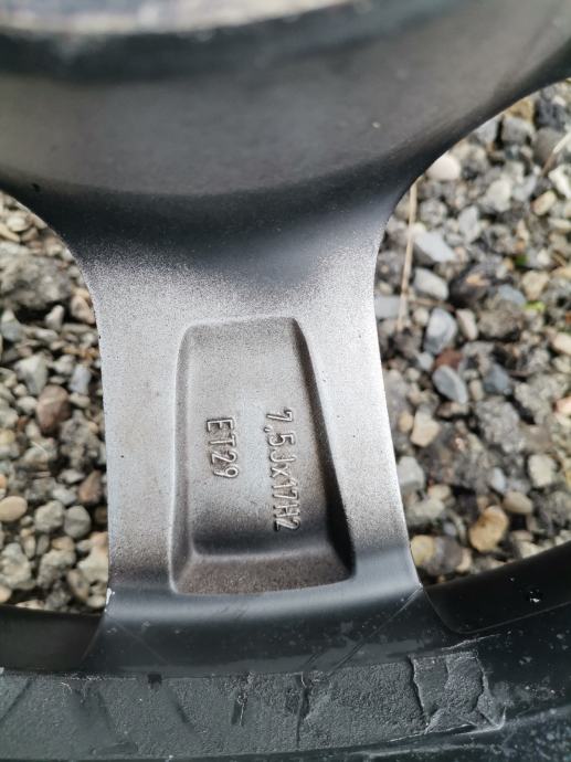 Prodajem GARNITURU alu felgi Ronal germany raspon rupa 5x112 mm, ET 29, centralna rupa 66.6mm,7. 5J, na kojima su gume dim 225/55R17 M+S. Dvije Vredstein a dvije Bridgestone sa 5. 5 mm šare za sezonu odlične. Felge su ravne, nikad varene, u crnom dipu, ventili obični metalni.gume uredne. Model tvornički odgovara za BMW serije 5 model G30 .Cijena seta je 200 eur. lokacija Kutina. 0955008274