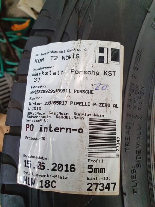 Aluminijske felge za Porsche Cayenna . Pirelli gume. Dimenzije guma 235/65 R17 . Dubina šare na gumama : 5mm.