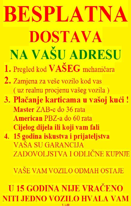 8.⭐ Kupnjom vozila ostvarujete garanciju na prevožene kilometre, te na motor i getribu (mjenjač) 6 mjeseci (mogućnost dodatne garancije od 3 godine na sve ostale kvarove).