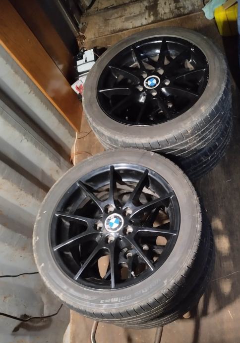 Prodajem 4 felge od 17'' za BMW 1 i 3, ali mogu i na druge aute sa istim rupama... gume su hankook ventus prime 3 225/45 dot je 4521 i negdje su na pola životnog vijeka (~6mm zazor), svakako bi mogle preči barem još 10 000km, a prešle su u svakom slučaju manje od 20 000, balansirane i spremne za korištenje; cijena fiksna i idu isključivo kao set, felga 60 + 15 guma, sve skupa 300e, mogućnost dostave do 250km, inicijalni upiti putem poruka, ne zvati ujutro