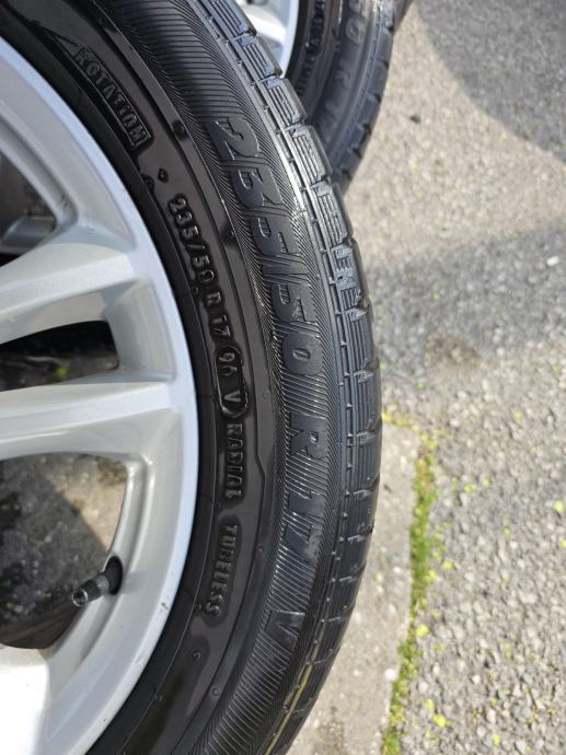 235/50/17, DOT 0721, sa ugrađenim senzorima tlaka guma. Senzori su ispravni, gume i felge u dobrom stanju.
