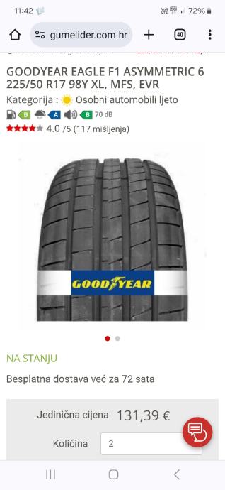Odlicne felge orginal od Audi A5 2020godine, gume goodyear 225/50/17 dot 1923 sa rubom za zaštitu felge komplet 600e