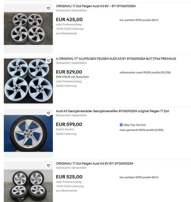 Alu felge 17'' rupe 5x112, 4 kom. audi vw mercedes alufelge 8Y0601025