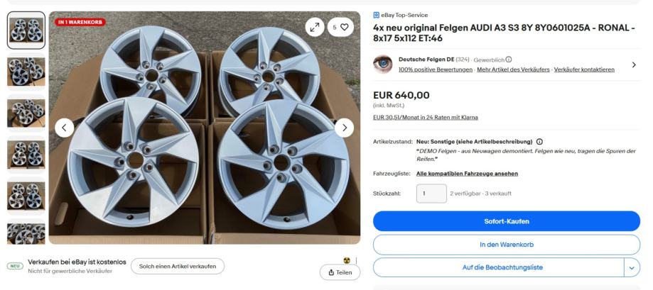 Prodajem 4 rabljene felge 17" sa gumama (ljetne, imaju dosta mesa ali po rubovima dvije gume zbog optike izbrijane pa preporuka za zamjenu). Originalne gume došle sa Audijem A3 Sedan S-Line (2022). Moguća dostava po dogovoru za Zg, Sk ili Ng, Sb.