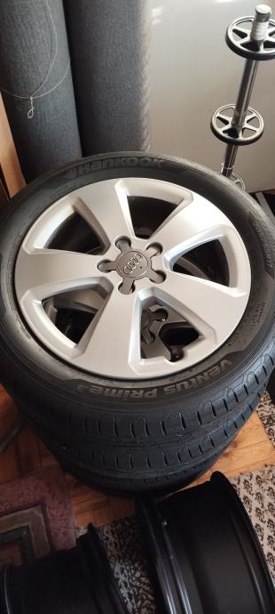 Original Audi A3 alu felge 17 vola (8VO 601 025 C), dimenzija 6x17 ET48, 5x112, centralna rupa 57,1 sa ljetnim gumam Hankook Ventus Prime 3 205/55-17 u TOP stanju (gume dot 2019). Komplet je u stvarno OK stanju. Cijena 330 eura.