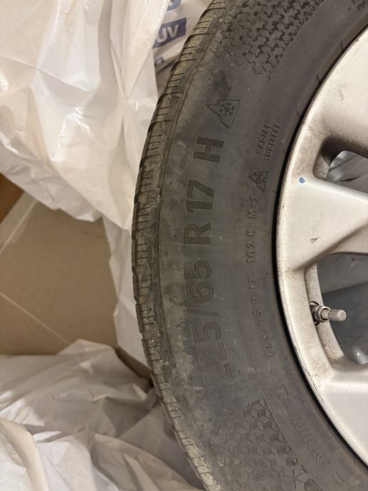 Prodajem 4 alu felge sa TPMS ventilima, zimskegume(Continental WinterContact), 225/65 17 ", profil cca 5 mm.