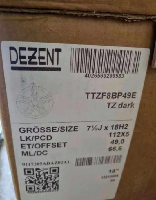 Alu felge 18'' 5x112 ET49 DEZENT TZ Dark Made Germany NOVE ZAPAKIRANE
