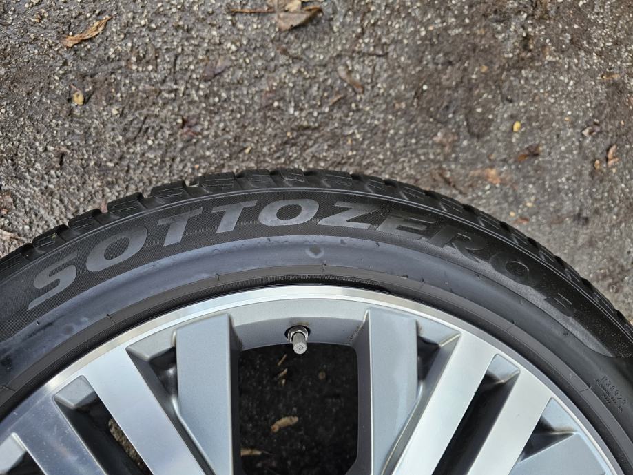 TOP NOVI Model-KALAMATA-022-025g.boja . Finish. Gunmetal Polished,(zavrsno metalno polirano),krakovi polirani plastificirani aluminij,iznutra boja metala plavkasta...Uz felge dolaze originalni VW TPMS senzori sa ventilima pritiska zraka,slika br-6 !! Gume zimske M+S Pirelli Sottozero 3 Winter