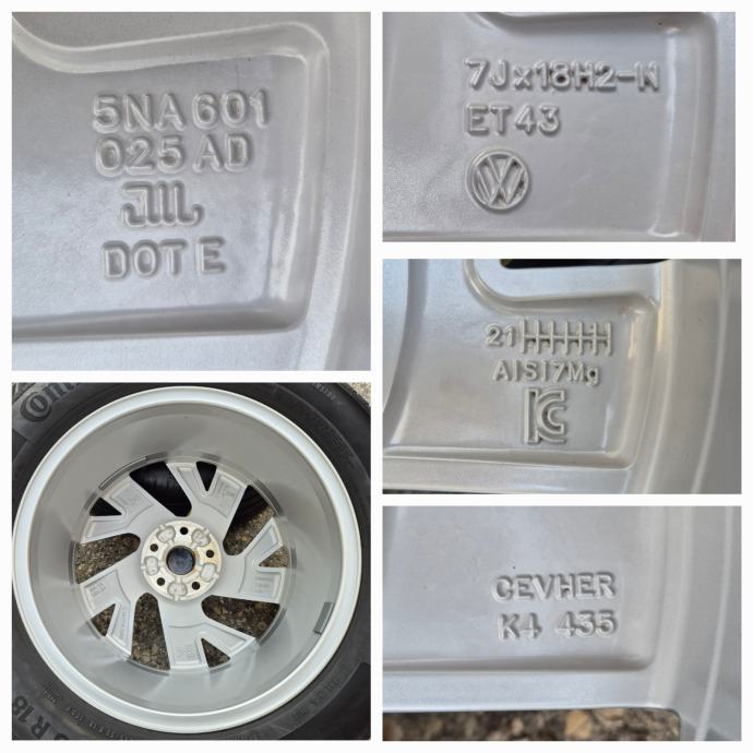 Alu felge 18 5x112 ORIGINAL Tiguan T-Roc Passat B8 sa ljetnim gumama 235/55R18 100V Continental Eco Contact 6 / DOT0121 - 1 sedmica 2021 godine / dubina sare na 2 prednje gume 6 mm , dubina sare na 2 zadnje gume 5.5 mm