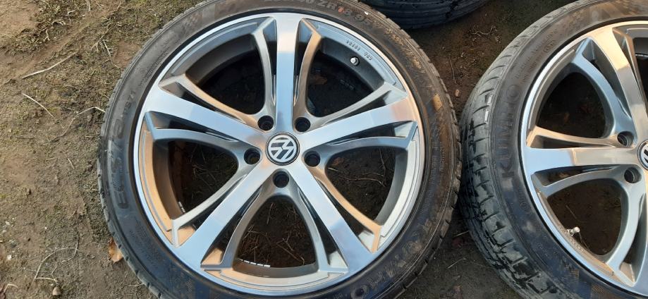 Felge su u odličnom stanju, ravne 100% i nisu varene. Na njima gume 235/40/18 ljetne kumho dot 4719 prošlo ljeto stavljene na auto i vožene 5 mjeseci, minimalno potrošene. Felge bile na golfu 5 i na passatu b6. Cijena za set je 3800kn nije fiksna. Zamjene me ne zanimaju.