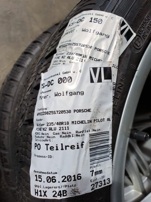 Aluminijske felge sa Michelin Pilot gumama. Dimenzije guma : 235740 R18 , 255740R18. Dubina šare na gumama: Prednje gume: 7mm, zadnje gume: 8 mm.
