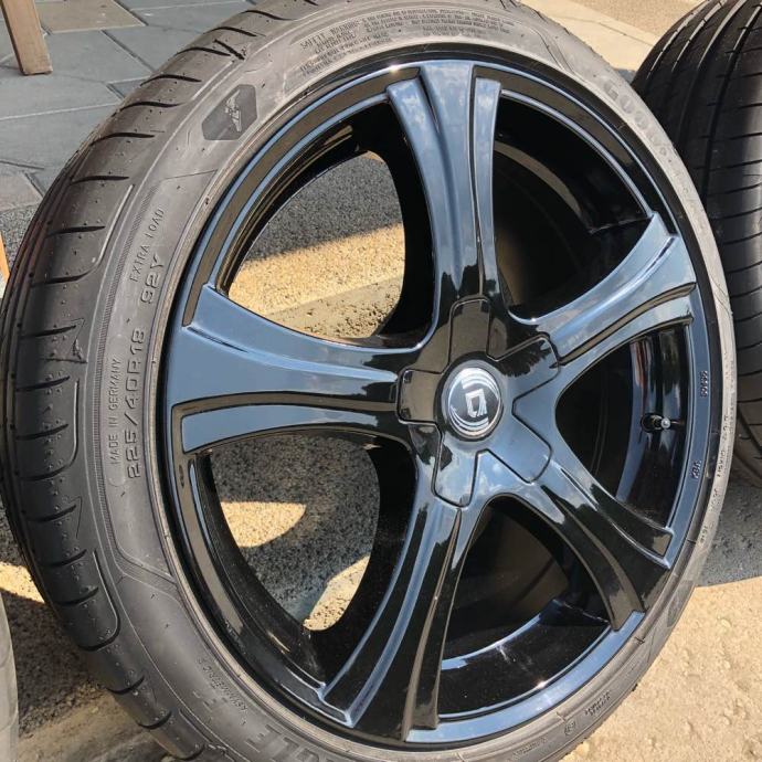 Nove alu felge Diewe Barba NeroS 8Jx18", ET45, raspon rupa 5x112, centralna 57.1 + nevožene ljetne gume Goodyear Eagle F1 Asymmetric 3 u dimenziji 225/40/18 92Y, DOT1518. Stanje 10/10.