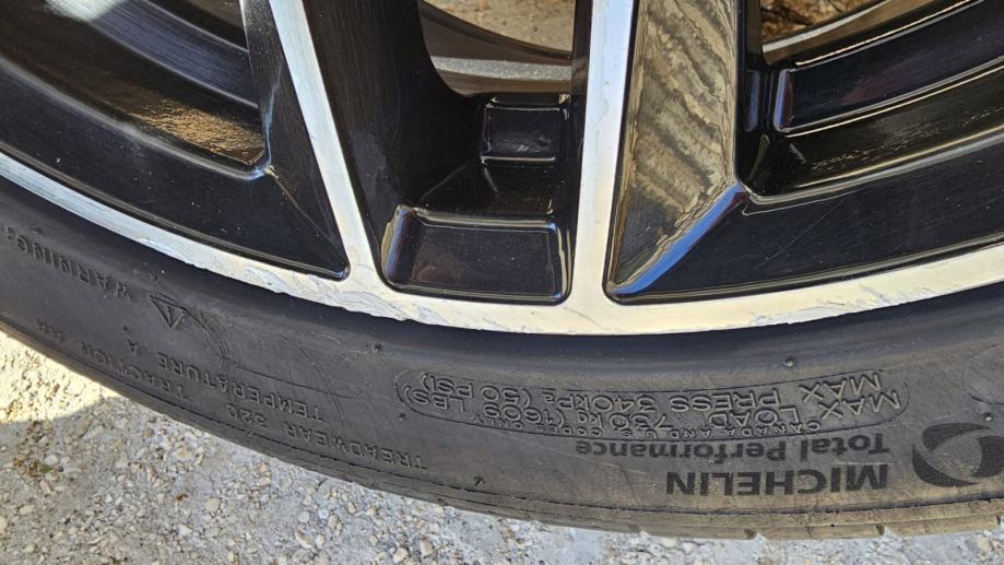 4. Felga na 3 mjesta ( sva 3 mjesta su na 1/2 felge ) ostecena malo vise ali plitko , lak sa srebrenog dijela se skida