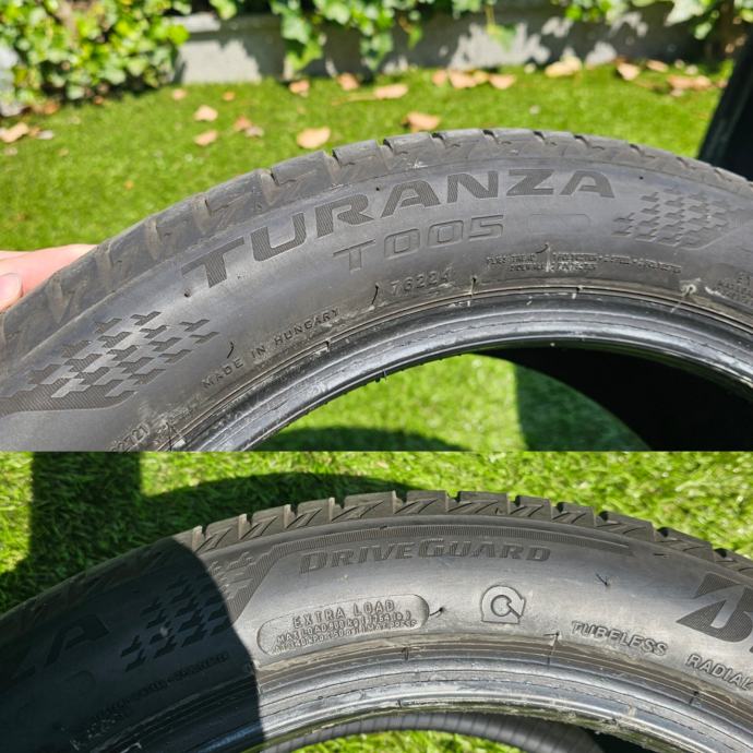 Uz felge dajem dvije Bridgestone Turanza T005 Driveguard 245/45/18 gume koje su vožene 2 sezone na prednjoj osovini, ima još cca 6mm profila.