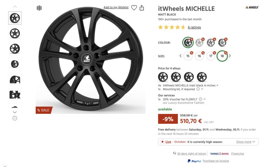Na prodaju aftermarket 18" mat crne felge itWheels Michelle + ljetne gume