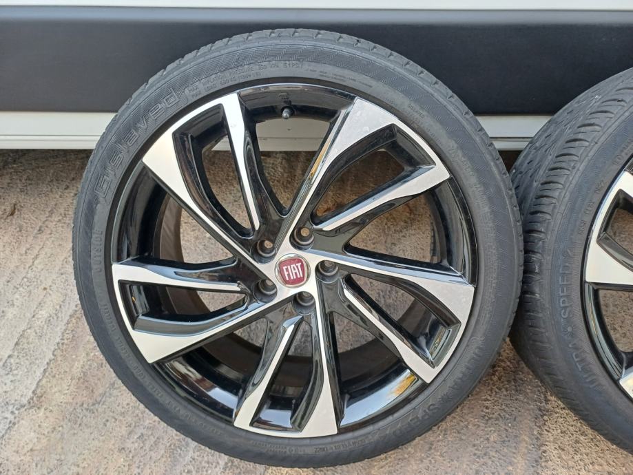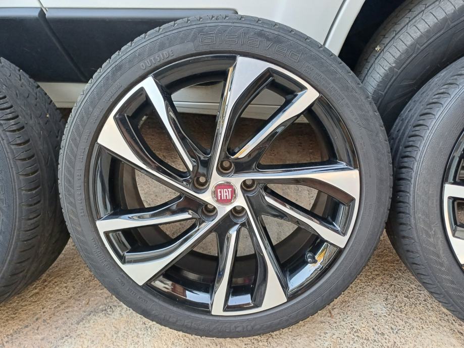 Originalne Fiat aluminijske felge u izvrsnom stanju, felge su kao nove, nemaju nijednu ogrebotinu na sebi, gume su 2022 godina, malo vožene i u odličnom su stanju, cijena po komadu 210 eura (felga + guma)