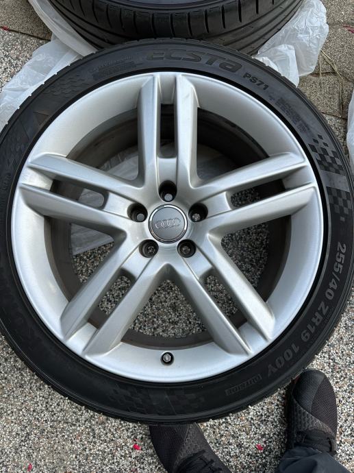 Prodajem alu felge original Audi A6 S-line 19" sa ljetnim gumama Kumho Ecsta PS71 dimenzije 255/40/19" u odlicnome stanju felge su potpuno ispravne bez ostecenja udubljenja i ostalih ostecenja. moguca provjera ispravnosti kod vulkanizera. Prodaja cijeli set felge sa gumama 600 eura.