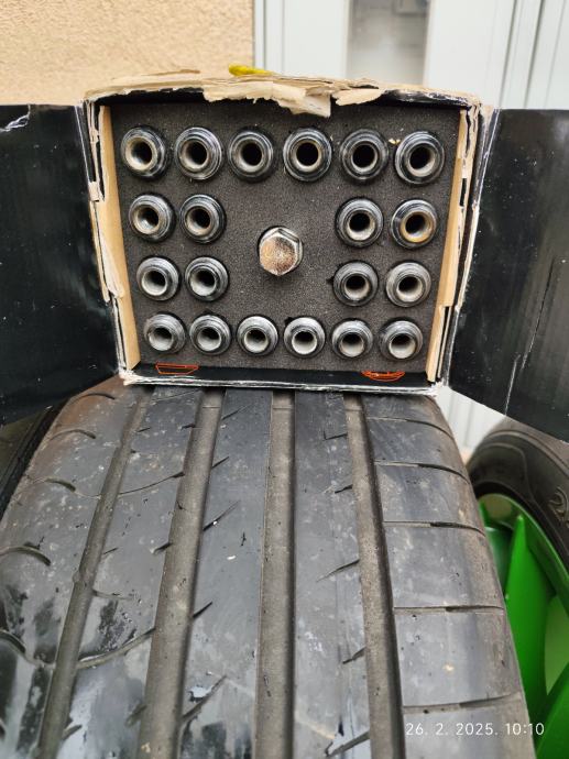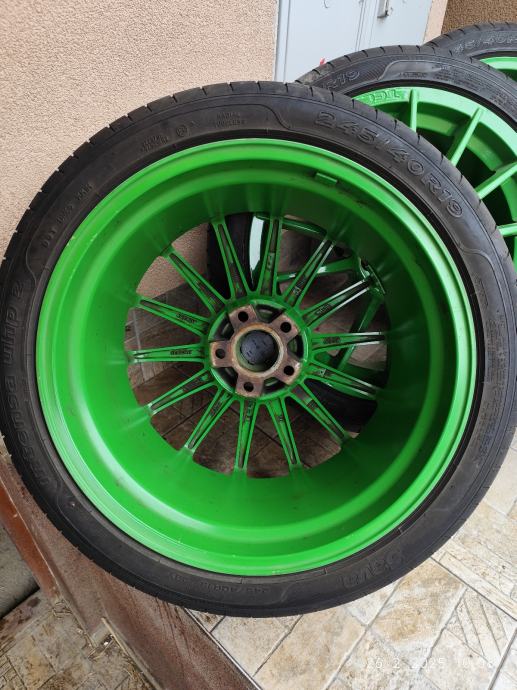 Prodajem 4 Alu felge 19" s ljetnim gumama 245/40,skinute sa Nissan Juke.Gume imaju utore oko 5.5mm. U kompletu dolaze i komplet vijaka za felge. Cjena za komplet 600 eura.