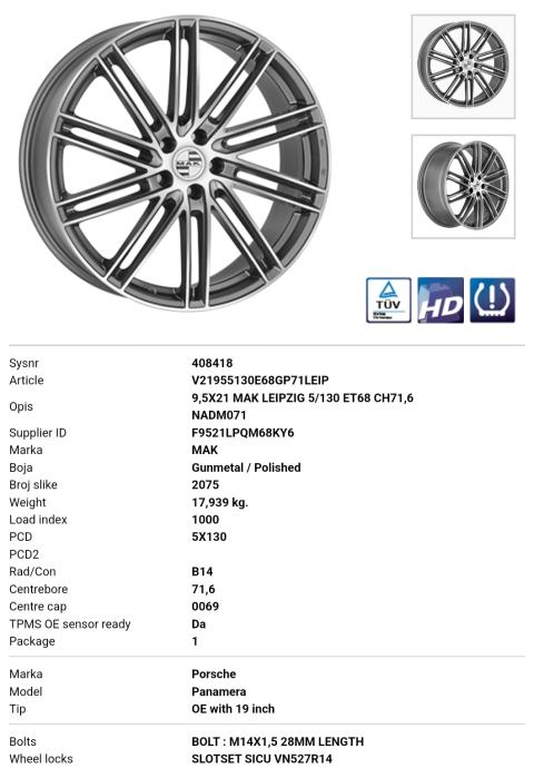 9,5X21 MAK LEIPZIG 5/130 ET68 CH71,6