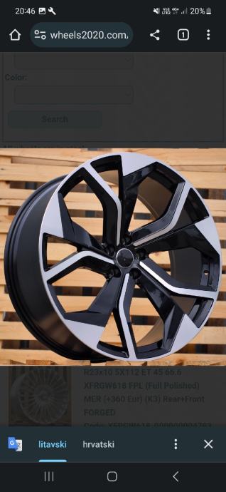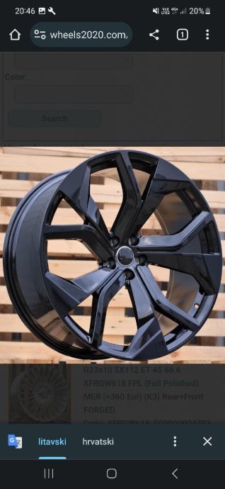 Cijena za 4komada sa PDV-om je 2000€ , moze kupnja i sa novim gumama. Za navedeni su gume 295 35 R23.