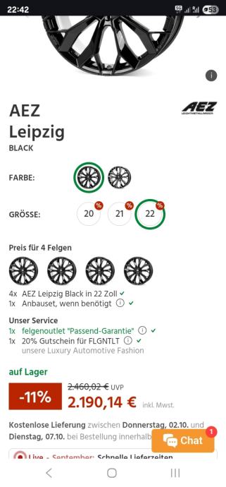Alu felge AEZ 22'' 5x112, 66.6 Audi A6/A7, Q3, Q5, 1000e set NOVO