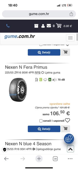 Alu Felge od Audija A4, pasu i na druge modele. 5x112, 16 cola. Na njima su 2 nove gume dot 23 g. Nexen placene 230,00eur. Druge 2 gume treba promijeniti/ dot19. Felge su original Audi, ofarbane u crno, bez ostecenja. Cijena za set felgi s gumama 250,00eur/ fiksno.