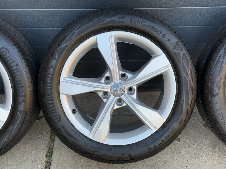 Prodajem originalne Audi alu felge 17 cola sa Audi A4 B9 modela u odličnom stanju zajedno sa Continental EcoContact 6 225/50/17 ljetnim gumama DOT 4523 sve četiri te su također jednako potrošene,dubina ripne oko 6mm