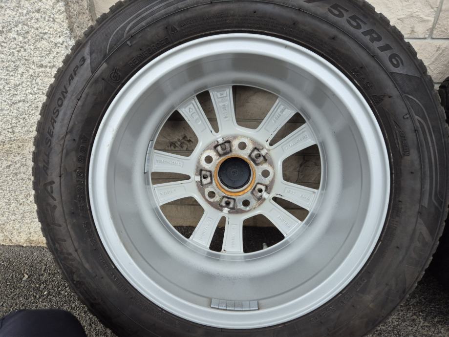 Na felgama su cjelogodišnje gume Maxxis 225/55-16, DOT2823, dvije 7 mm profila, dvije 6 mm.