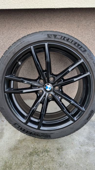 Prodajem BMW felge M3, serija G20/G21. Na sebi nemaju jednu jedinu ogrebotinu, dolaze sa RDKC senzorima tlaka i Michelin Pilot gumama. Felge i gume su kupljene i montirane u ovlaštenom BMW servisu u 8. mjesecu 2023 godine, za što imam i račun. Gume su prošle 20 000 km i dubina profila je 6.5 mm.