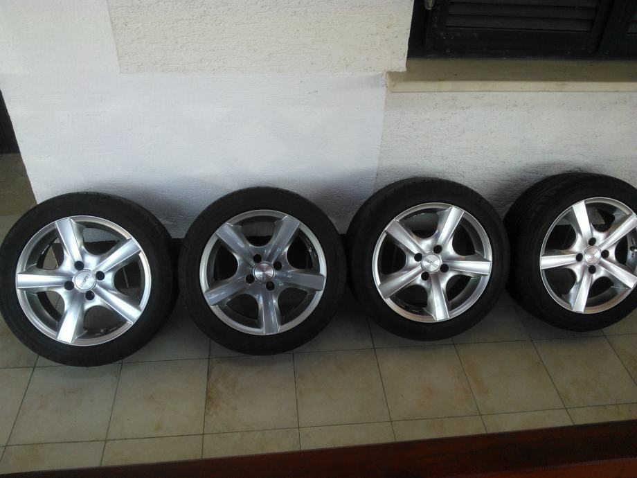 Alu felge Dezent 15 cola 4X100, sa gumama Good Year Eagle 195/50 R15, gume i felge su odlične, kupljene nove prije dvije godine i vožene samo ljeti. Bile na Renault Meganeu. Uz felge dajem i šrafe. 098/191-7352