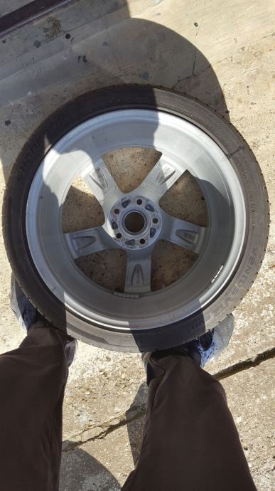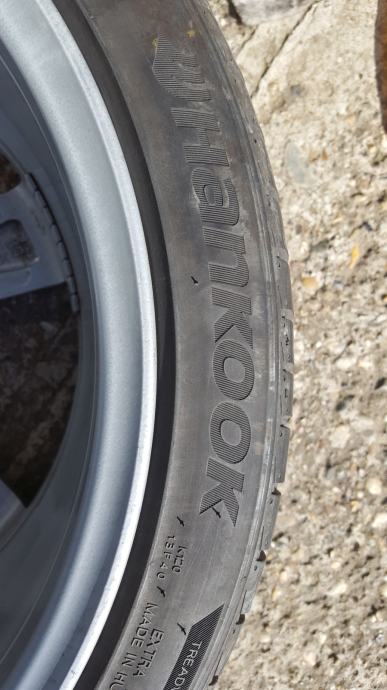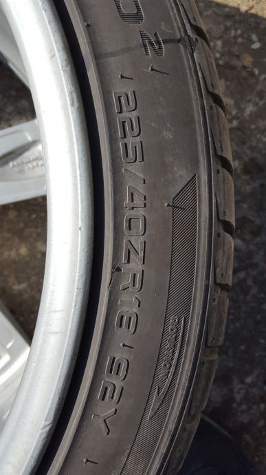 Prodajem gore navedene felge i gume iz jednog jedinog razloga a to je što sam dobio dijete i potrebna mi je barem mala doza veće udobnosti. Felge su ravne,ne tresu, u 4. mjesecu su pjeskarene i lakirane iz crno-sive kombinacije u sivu. Kao što se vidi po slikama, malih oštećenja ima na rubovima felge jer zaštitni dio gume ne pokriva felgu pošto je felga 8,5 jota. Gume su kupljene potpuno nove u 3mj. 2016. godine te su vožene ljeto 2016 i ljeto 2017. Hankook Ventus V12 Evo2 je model gume, dimenzije 225/40/18. Na slikama se jasno vidi DOT gume i stanje(5-6mm svaka). Uz felge dolaze i original centralni čepovi te vanjski čepovi DOTZ. Cijena nije fiksna. U obzir dolaze i zamjene za 17" felge. Moguća prodaja ili samo felgi ili samo guma. Cijena je tad po dogovoru.